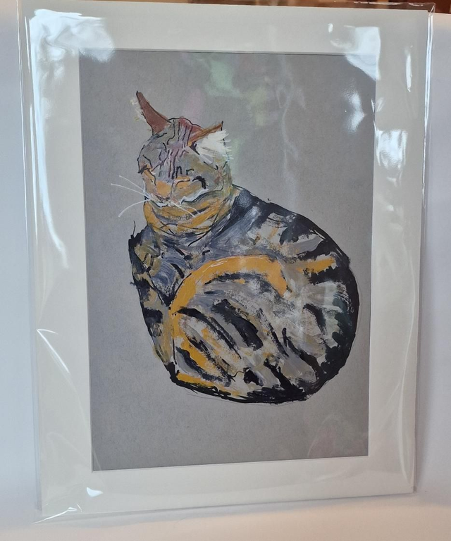 A4 acrylic painting of a cat on strathmore mixed media paper 300 g mounted